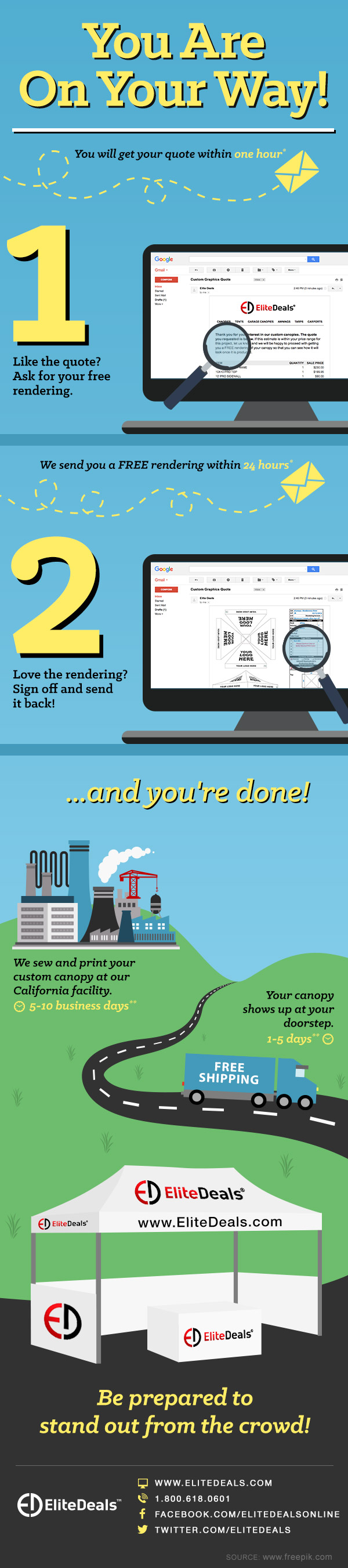 Thank you for your interest in our custom canopies. We have received your request and we will send you a quote within 1 hour during business hours. If you are not contacted within one business day of submitting your quote request, please call (901)786-6862 Monday - Friday 8:30 AM to 5:30 PM (CST) for assistance or email cgraphics@elitedeals.com. Thank you again for your interest in our custom canopies.